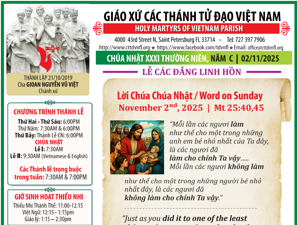 Đọc toàn bộ Thông Tin Dân Chúa ngày 2 tháng 11, 2025.